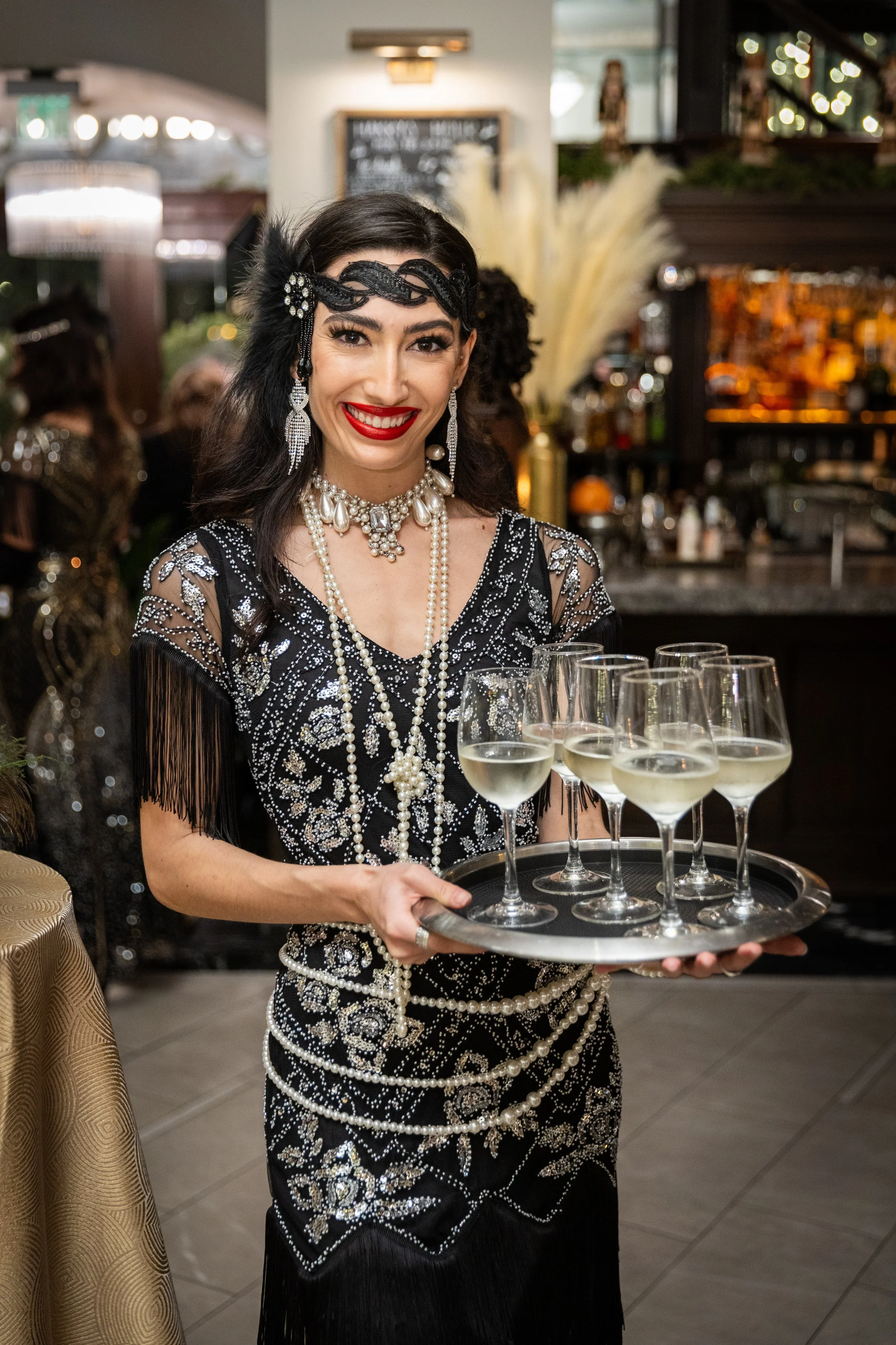 Elements Managed: Holiday party concept development centered around a Gilded Peacock Soirée theme, including venue sourcing, floorplan and guest flow planning, tabletop décor and centerpieces, linen selections, live string entertainment, fashion sketch artist experience, feather greeters, flapper servers, perfume and cologne bar activation, and immersive specialty entertainment enhancements.